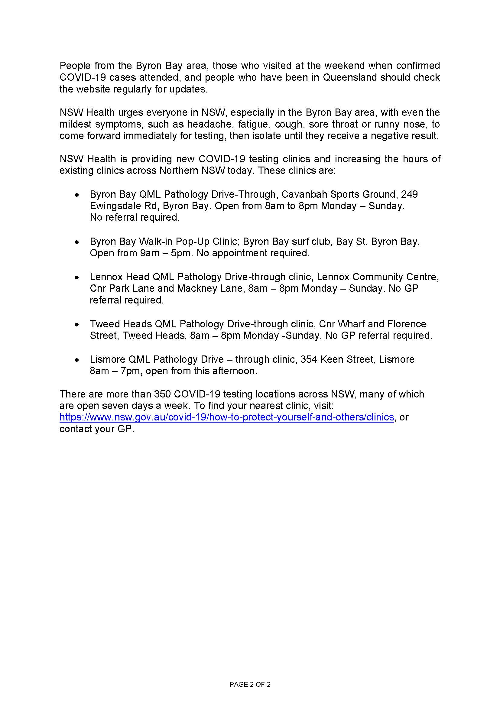 Nsw Health On Twitter Nsw Health Is Providing New Covid19 Testing Clinics And Increasing The Hours Of Existing Clinics Across Northern Nsw Today Two New Clinics Will Be In Operation In Byronbay